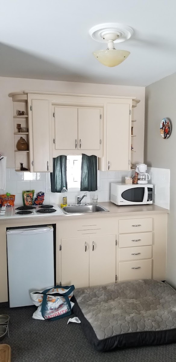 Enjoyed my stay here. Room was a 2 burner (no oven) kitchenette with small fridge. Microwave, toaster, coffee maker & kettle. Room had 2 separate bedrooms also. Clean rooms, beds and towels. Friendly management and staff. Would definitely stay again.